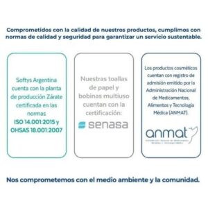 Contamos con una amplia línea de papeles de limpieza, destacados por su gran calidad y seguridad en su utilización, bajo estrictas normas de calidad y seguridad. Satisfacen todo tipo de necesidades de limpieza, abarcando los más diversos mercados, tales como: gastronomía, laboratorios, industrias, centros de salud, empresas de limpieza, hotelería, servicios de procesamiento de alimentos, etc. Contamos con las correspondientes hojas de seguridad, aprobaciones de SENASA para la industria alimenticia en varios de estos productos