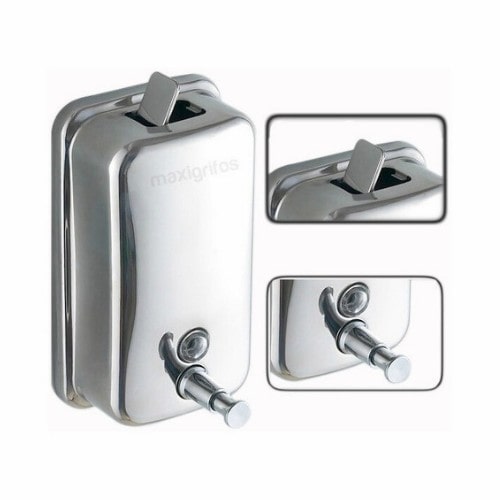 Dispensador fabricado íntegramente en acero inoxidable. Se instala en la pared mediante tacos y tornillos. Producto se rellena por un agujero dispuesto en la parte superior (con cierre). Disponibles en dos capacidades de 500mm y 1000mm. Recomendado para áreas institucionales y de alto tráfico. Producto incluye elementos de instalación. Diseño muy elegante y compacto.