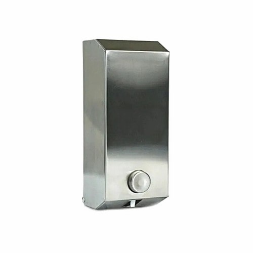 Dispenser construido en acero inoxidable calidad 430. Deposito removible para relleno a granel. Posee llave de seguridad. Apto para el uso de jabón líquido o alcohol en gel.