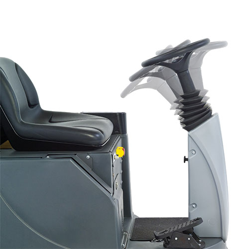 Con un nivel sonoro reducido a solo 63 dB(A), la fregadora puede usarse en áreas sensibles al ruido sin interrumpir la actividad diaria. Su batería de gran capacidad proporciona hasta 4,5 horas de funcionamiento continuo, lo que se traduce en mayor autonomía y menos tiempos muertos. Asimismo, su diseño ergonómico facilita la visibilidad frontal, el vaciado rápido de depósitos y el acceso a los cartuchos bajo el asiento, reduciendo los tiempos de mantenimiento.