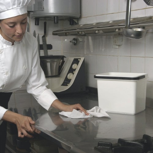 Disponible en varios colores, cada tono cumple una función dentro del sistema HACCP (por ejemplo: azul para áreas generales, rojo para sanitarios, amarillo para cocinas, verde para superficies de alimentos). Esta sectorización mejora la organización del trabajo y asegura la trazabilidad de los procesos de limpieza.
